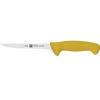 Twin Master is a commercial knife series that meets all requirements of strict hygiene, safety and quality regulations demanded in a professional kitchen. With bright, ergonomically shaped handles and precision stamped, finely honed, high carbon "NO STAIN" stainless steel blades, these knives deliver long-lasting cutting performance. The boning knife features a long, slim, thin, and flexible blade designed for cutting meat off the bone as well as for separating and skinning meat, poultry or fish.